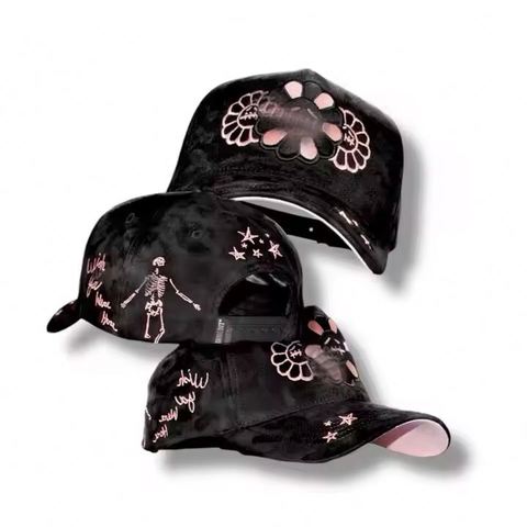 2025 originale di design in pelle scamosciata a tesa larga con strass e cappellino da Baseball ricamato con logo personalizzato cappello da Barbas